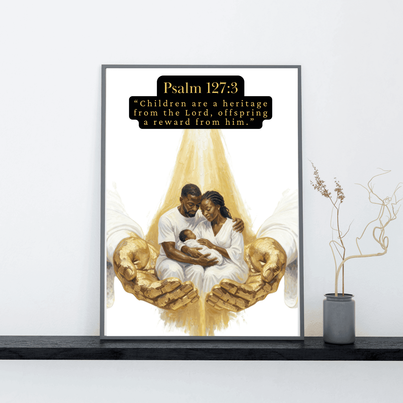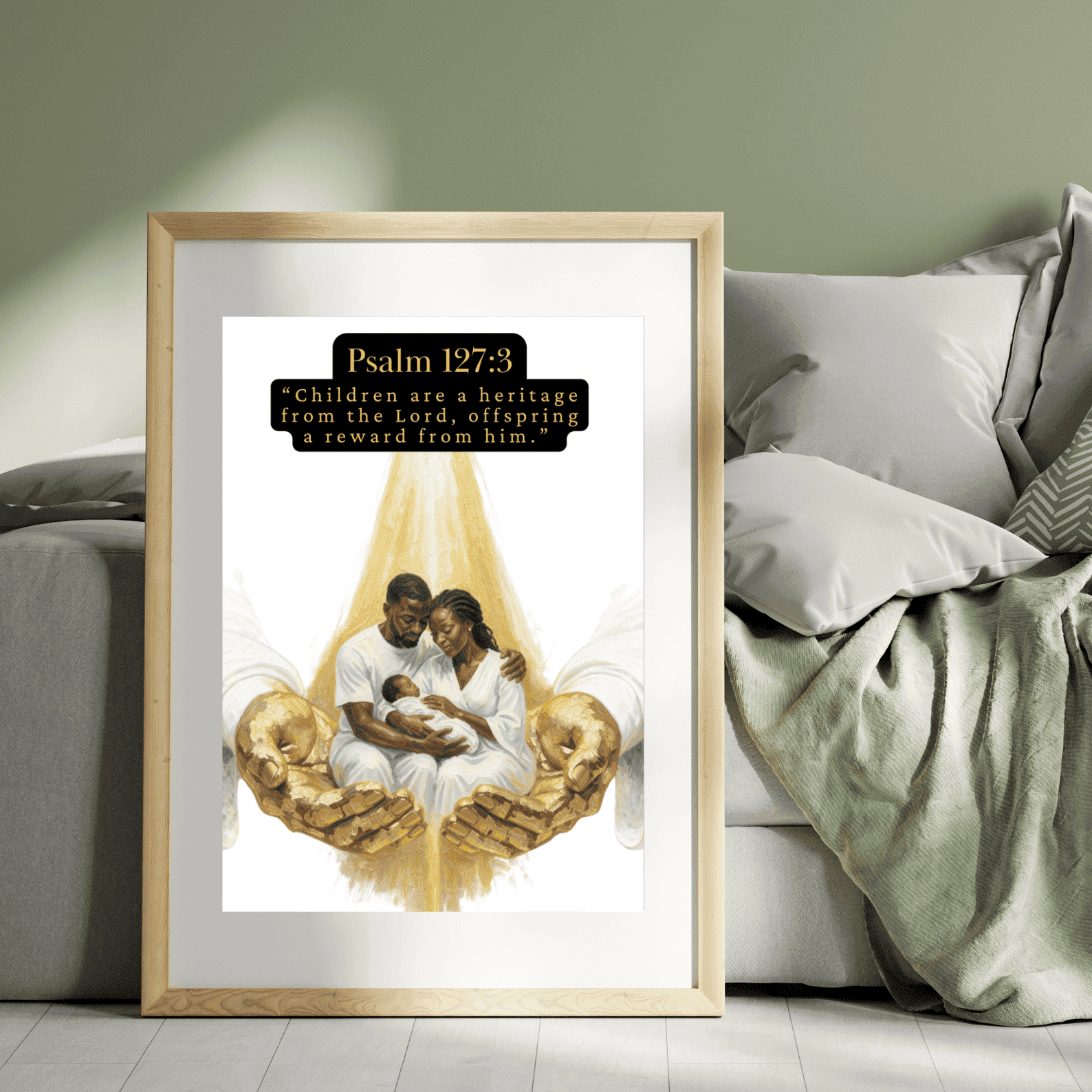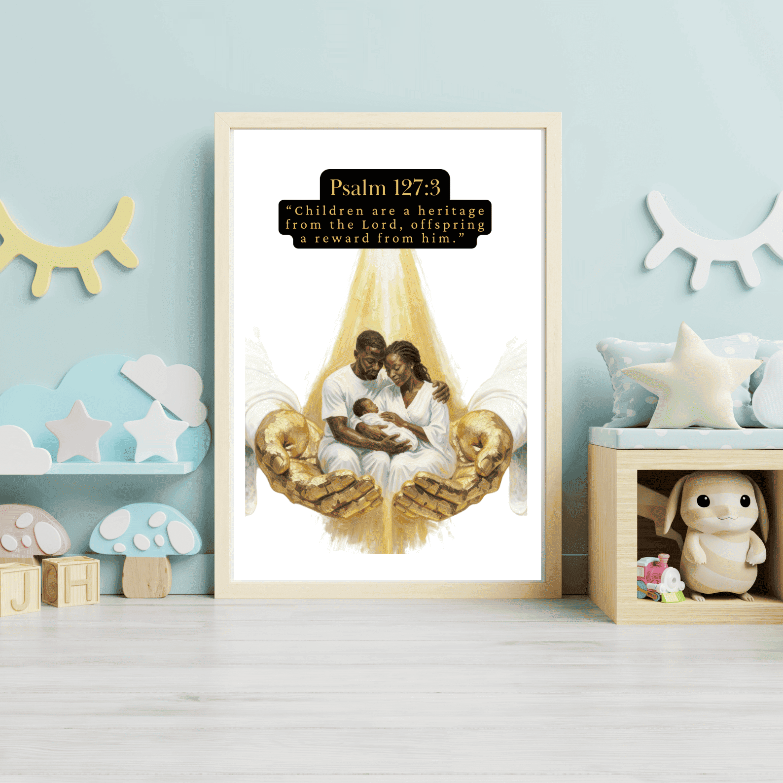 Perfect for newborn rooms, reading corners, or above the crib, this print adds a quiet spiritual reminder that reflects the joy and gratitude of parenthood. Whether you’re preparing your own nursery or gifting a new family, this piece brings a message that feels timeless and heartfelt.