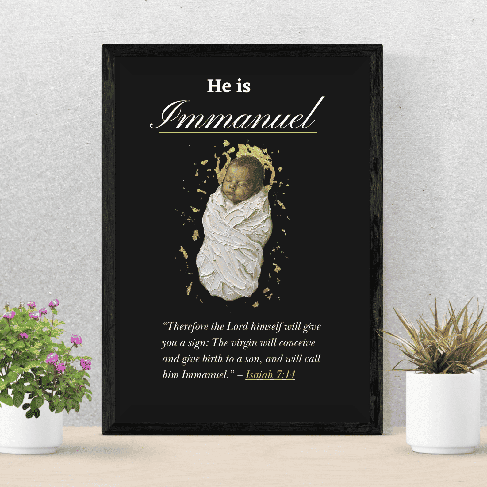 Frame this scripture print for holiday gatherings, family devotion, or gift-giving. It’s a heartfelt way to honor the promise and hope of Isaiah 7:14 throughout your Christmas celebrations.