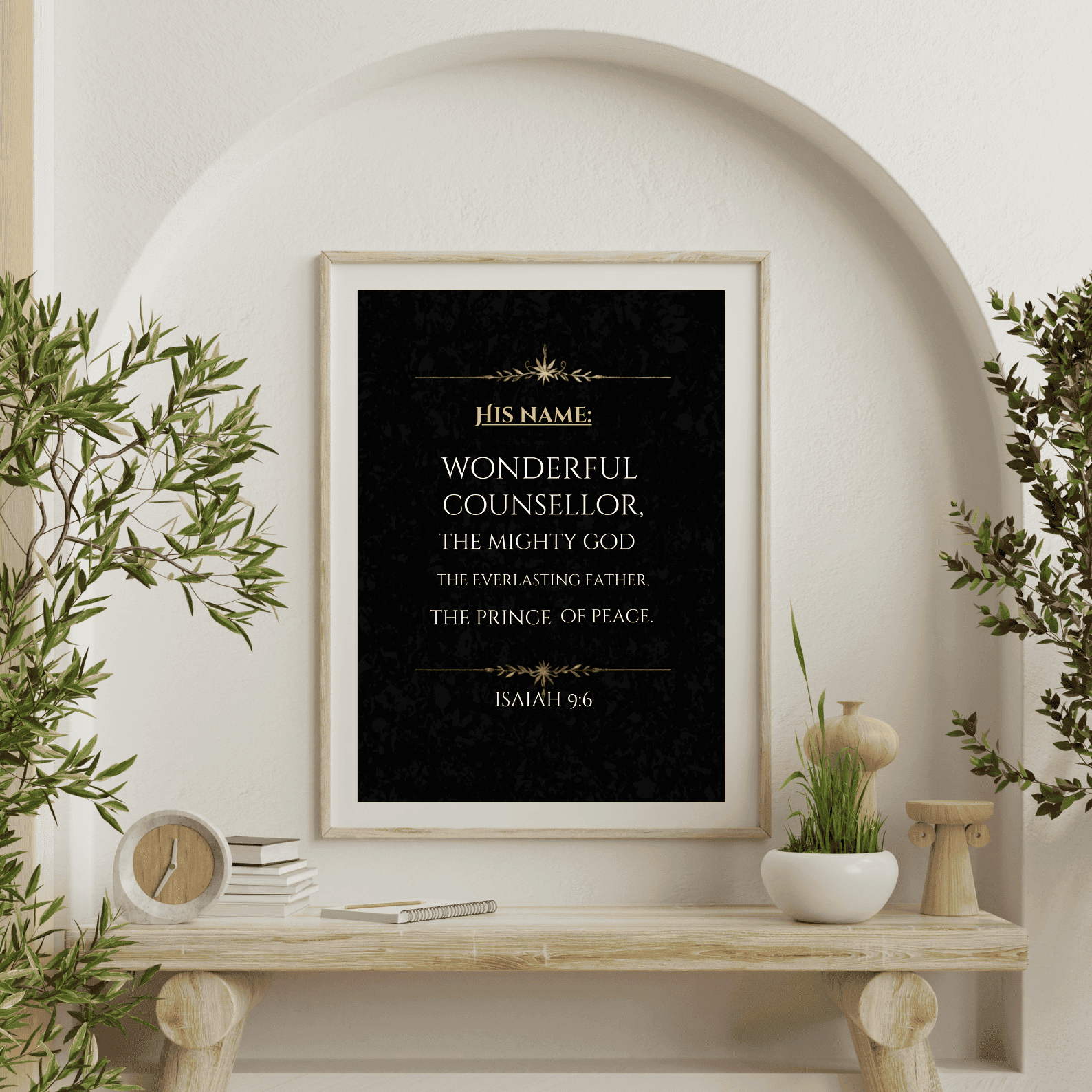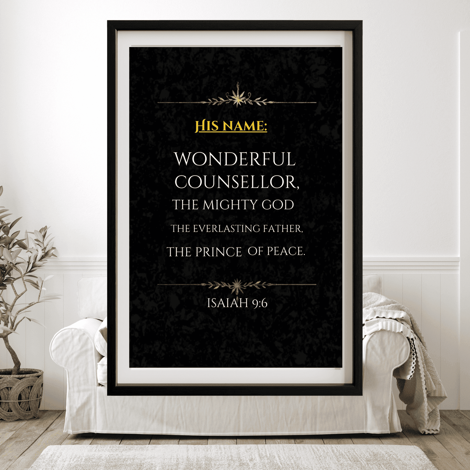 Faith-Filled Design: Features the timeless Isaiah 9:6 verse in a clean, elegant layout that complements modern, farmhouse, or traditional décor.